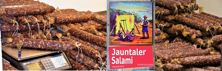Der Betrieb Pototschnig verpflichtet sich die Jauntaler Salami ausschließlich traditionell nach überlieferten Hausrezept herzustellen.